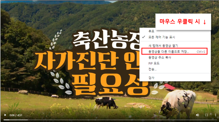 (마우스 우클릭 불가할 경우 영상창 활성화된 상태에서 키보드 Ctrl+S 클릭)