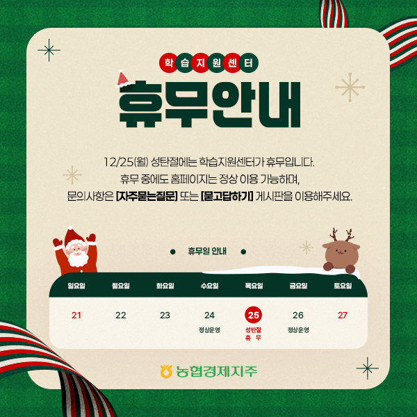 2025년 성탄절은 학습지원센터도 휴무임을 안내드립니다.