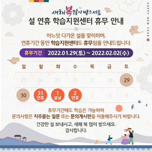 설 연휴 기간 학습지원센터 휴무 안내드립니다.