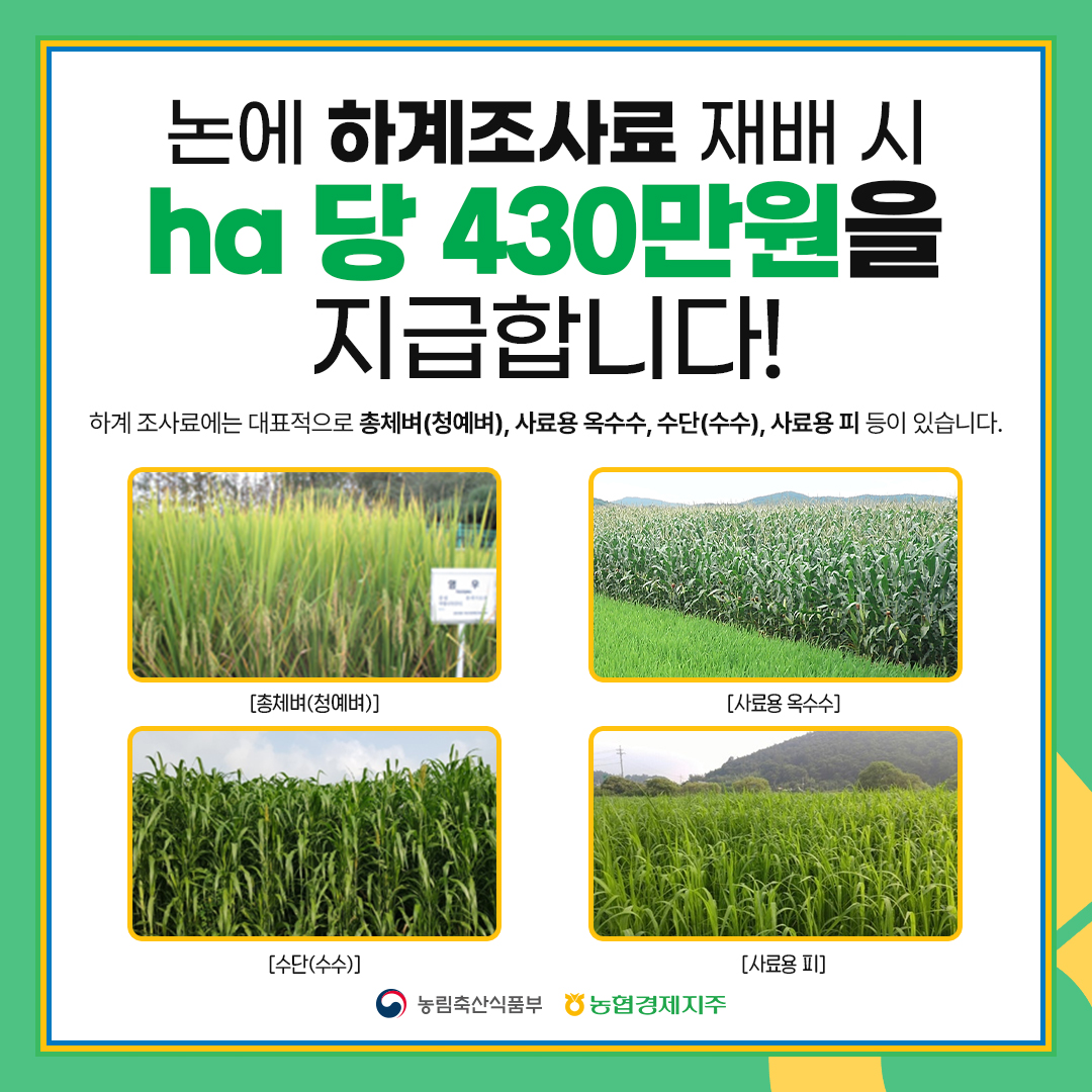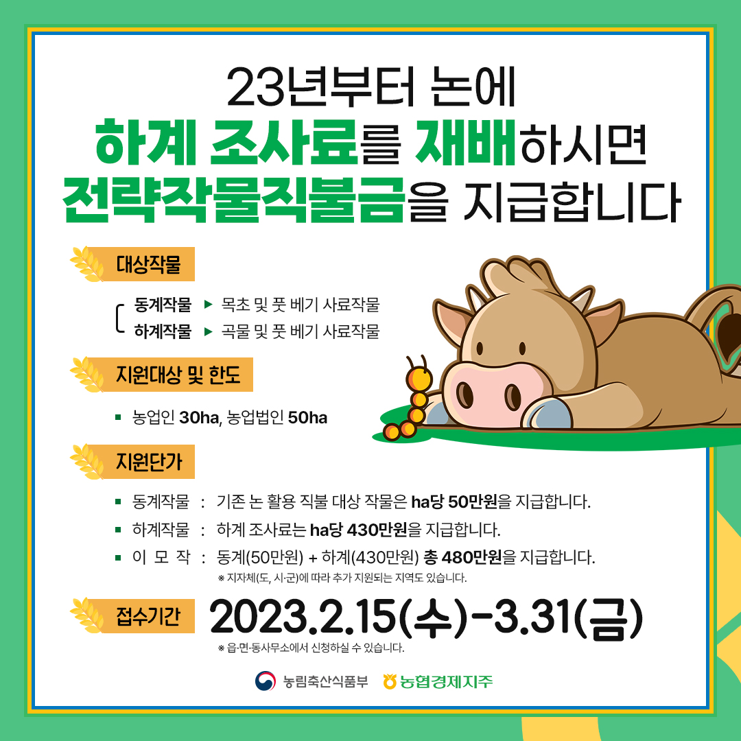 하계 조사료 재배관련 전략작물직불금을 안내드리오니, 많은 관심 부탁드립니다