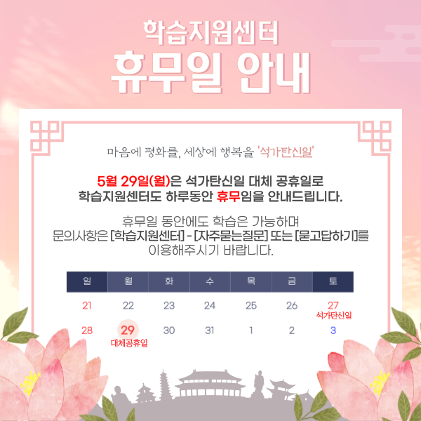 5월29일(월)은 석가탄신일 대체 공휴일로