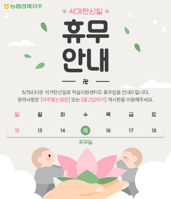 5월 15일은 석가탄신일(부처님오신날)로, 학습지원센터도 휴무임을 안내드립니다.