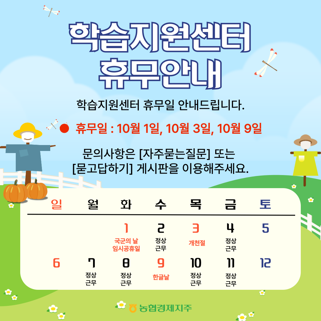 학습지원센터 휴무일을 안내드립니다.